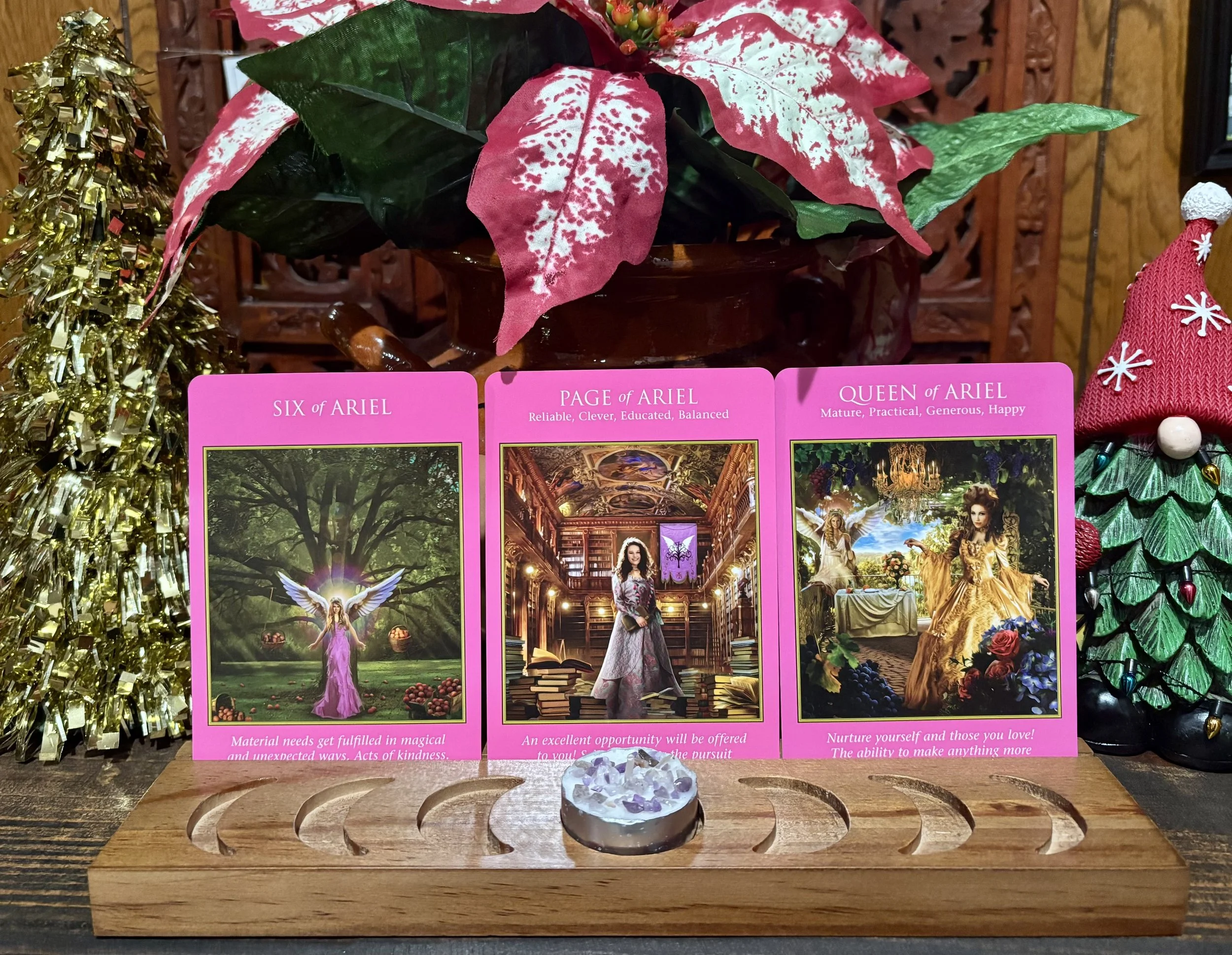 Six of Ariel: Material needs get fulfilled in magical and unexpected ways. If you’re the recipient of such a loving gift, then accept it with gratitude and humility. If you have the means to give to those in need, then do so with compassion without asking for anything in return. Gifts don’t always have to be financial but can be energetic or take the form of support.